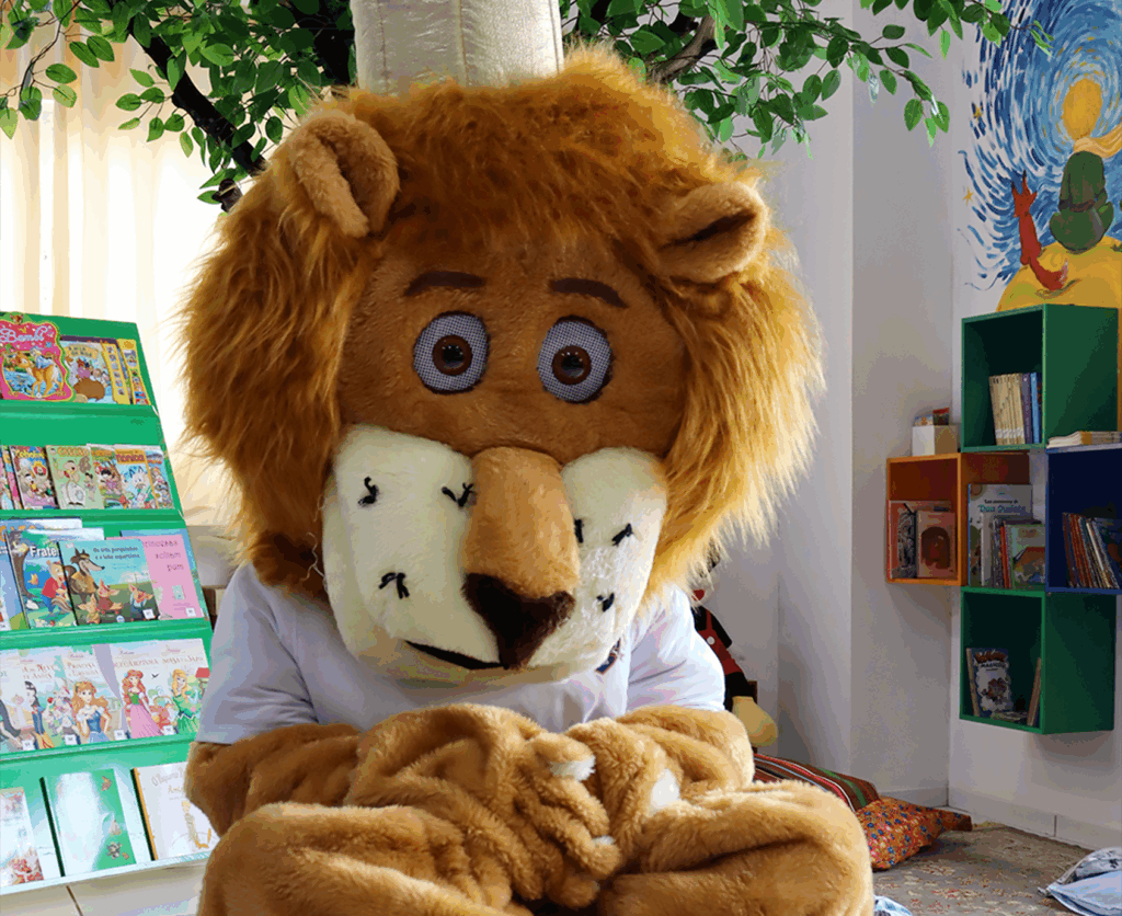 Rodas de leitura diárias, com contação e conversa sobre as histórias. A criança expande vocabulário, atenção e cria gosto pelos livros.